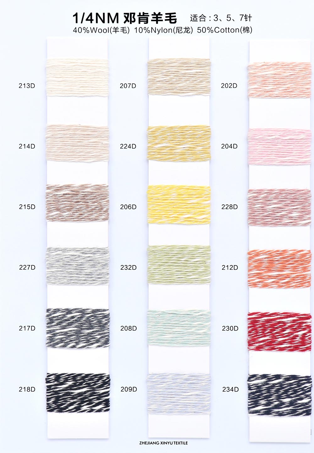 40%羊毛Wool 10%尼龙Nylon 50%棉Cotton